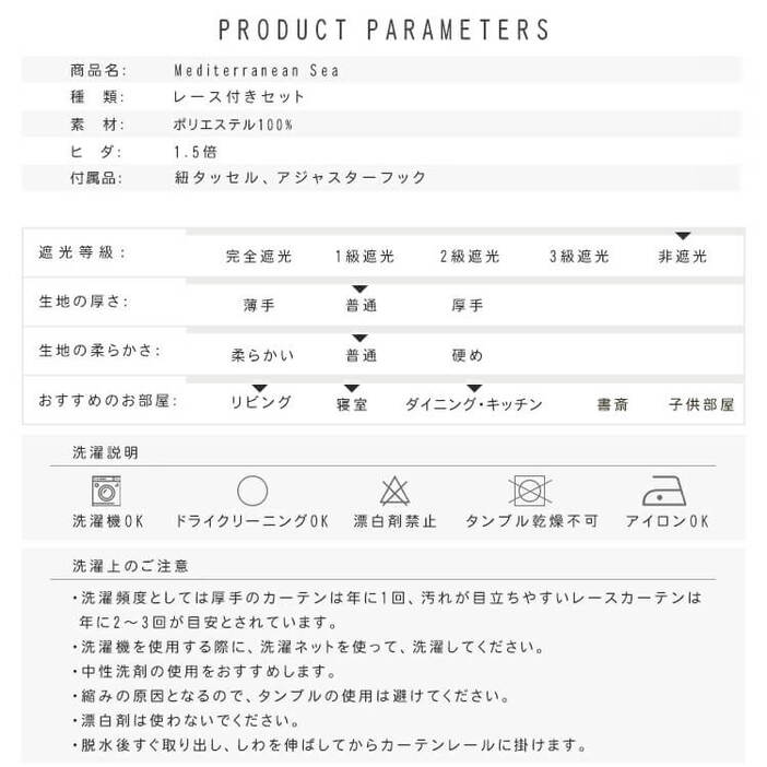 | 内 容 | レースカーテン+ドレープカーテン、紐タッセル、アジャスターフック |