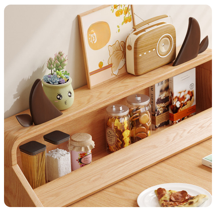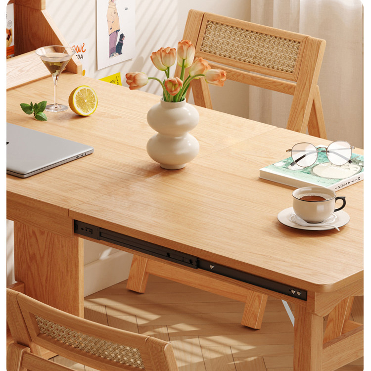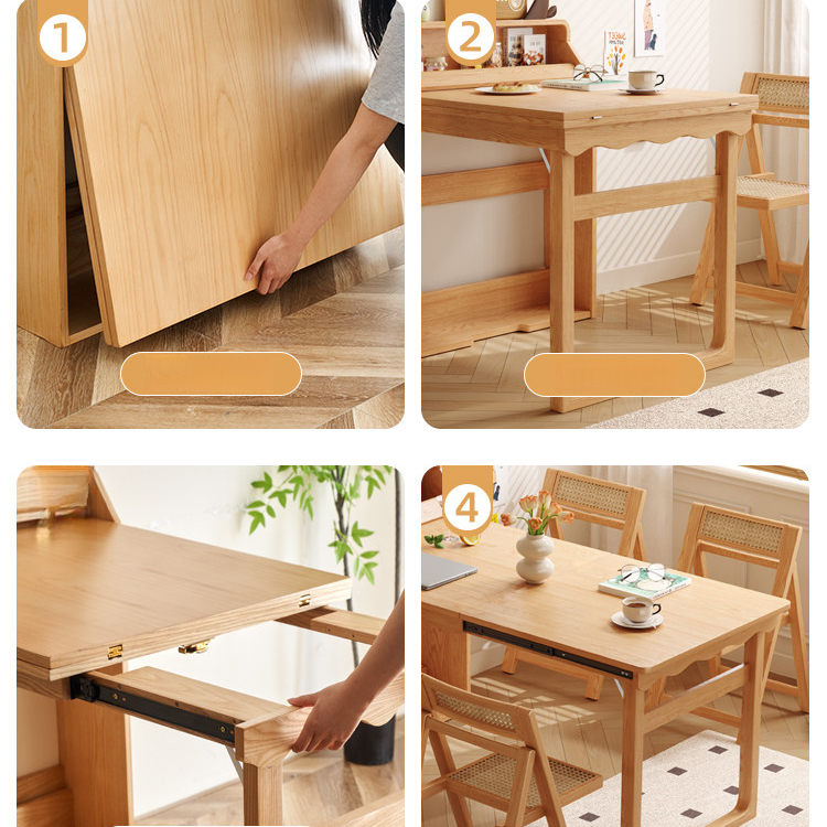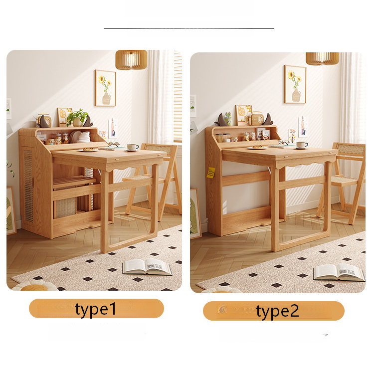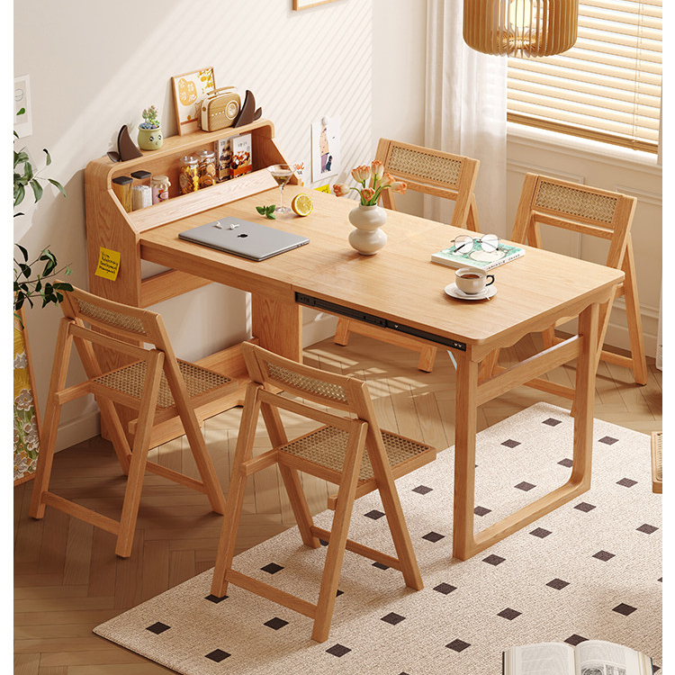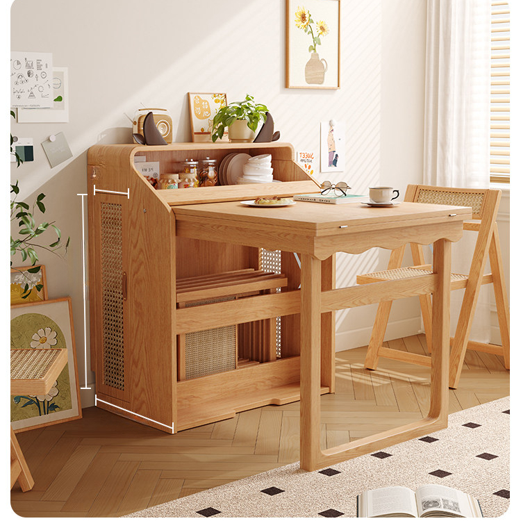 天然木 折りたたみダイニングテーブルセット|実木 食器棚一体型 折りたたみチェア付き|天板140cm・全長155cm 省スペース