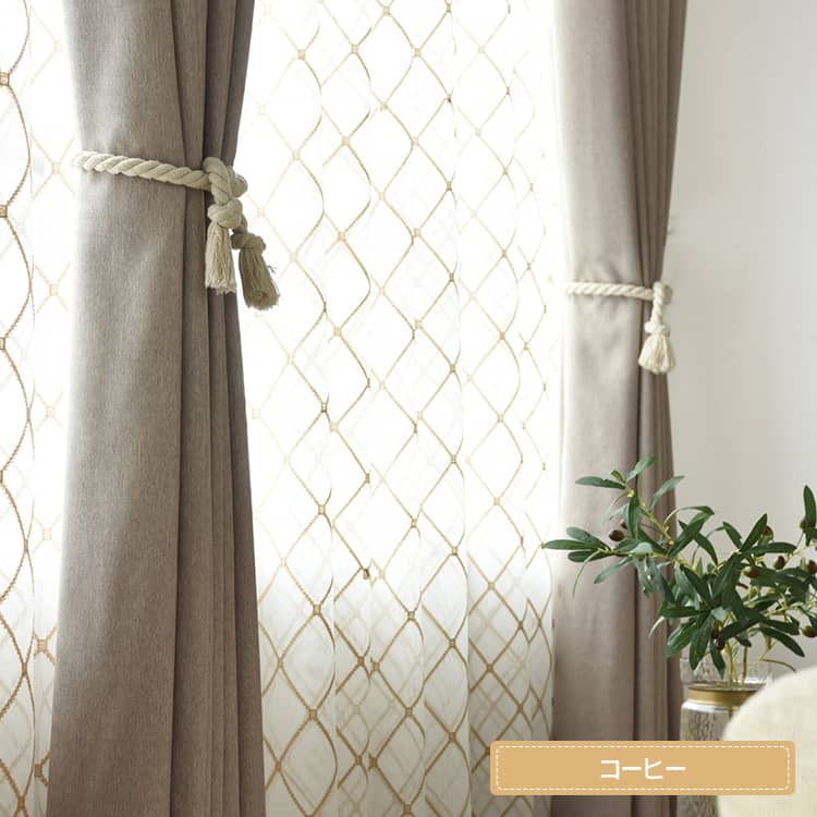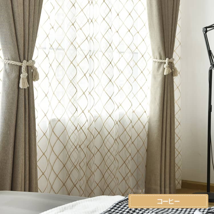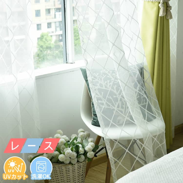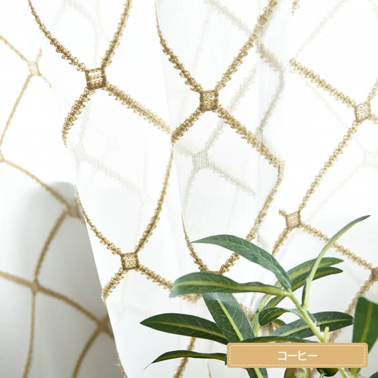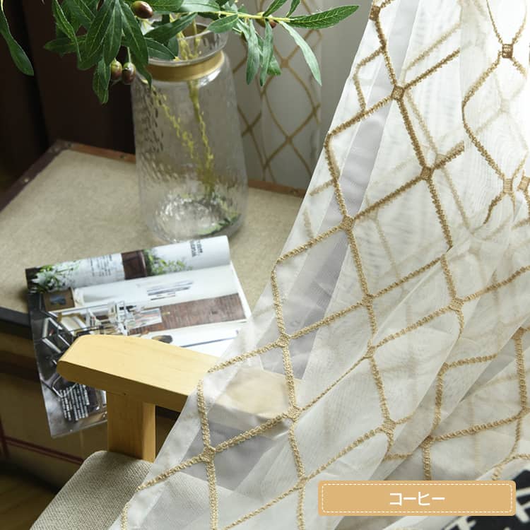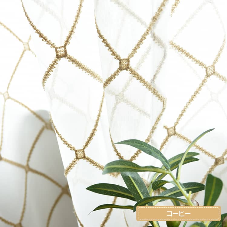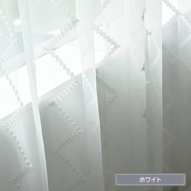 レースが特有の透け感と菱形模様のコントラストが、窓辺をより洗練された印象にアップデートします。
