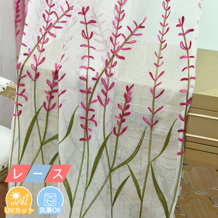 ロマンなラベンダー刺繍がカーテンの裾辺にデザイン。美しくい窓辺にアップデートします。
