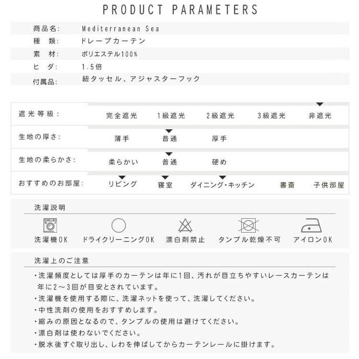 | 備 考 | ■ご購入頂く前に商品サイズ、窓サイズ、カラー、数量を十分にご確認ください。 採寸方法はこちらへ 【色・サイズについて】 ◆ご覧頂いている商品の写真につきましては、できるだけ実物の色に近くなるように努めておりますが、お使いの環境(モニター、ブラウザ等)の違いにより、色の見え方・素材感が実物と若干異なる場合がございます。 ◆若干の個体差があるため、表記サイズと多少の差異が生じる場合がございます。 【納期について】 ◆納期の詳細は、各商品・各カラー毎に記載しておりますのでご確認下さい。 ◆納期の余裕を持ったご注文をお願い致します。 (一部地域についてお届けできない場合がございます。) 【シワについて】 ◆梱包上畳んで出荷しますので、どうしてもたたみシワになってしまいます。 お客様が自らアイロンしてください。 |