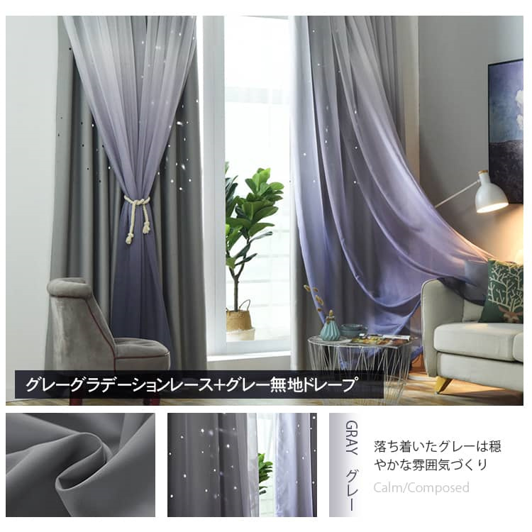 | 内 容 | レースカーテン+ドレープカーテン、紐タッセル、アジャスターフック |