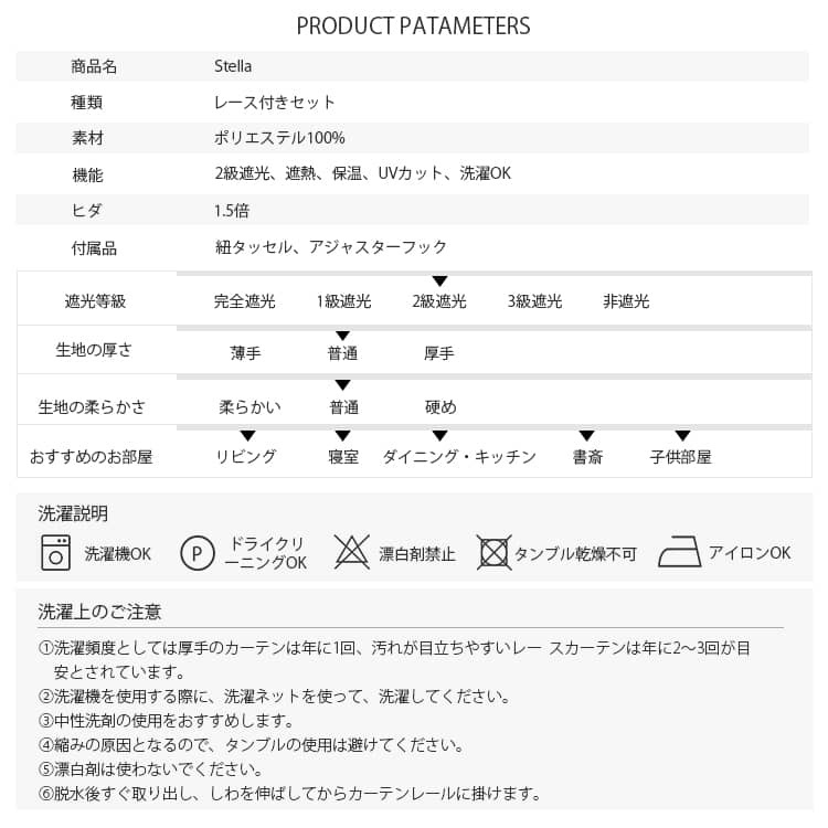 | 機 能 | 2級遮光、遮熱保温、UVカット、洗える |