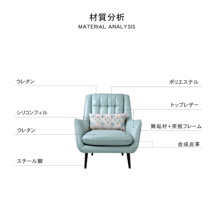 | 素材 | フレーム: 無垢材+突板 脚: スチール 張地: トップレザー、合皮 充填物: ウレタン |