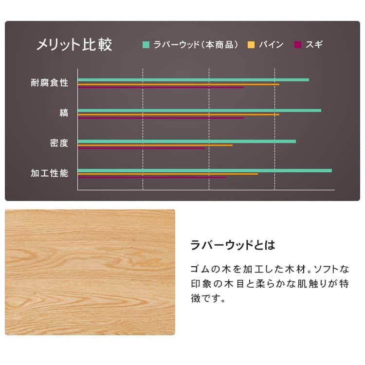ラバーウッド、ラテックス、エアレザー、ウレタン |