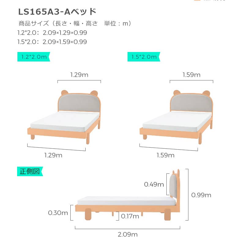 209*129*99cm(ベッド) 209*159*99cm(ベッド) 40*35*45cm(ナイトテーブル) |