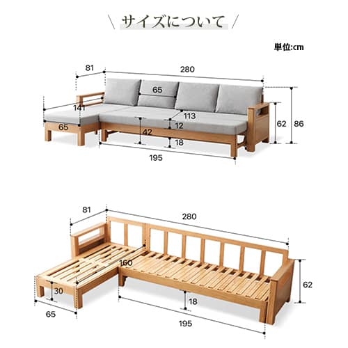| サイズ |   ■ソファベッド:205*125*74CM ■カウチ付きソファベッド:280*160*74CM  |
