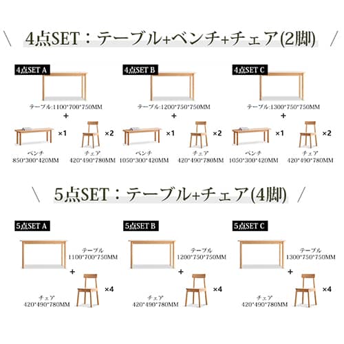 | サイズ | L110cm×W70cm×H75cm L120cm×W75cm×H75cm L130cm×W75cm×H75cm |