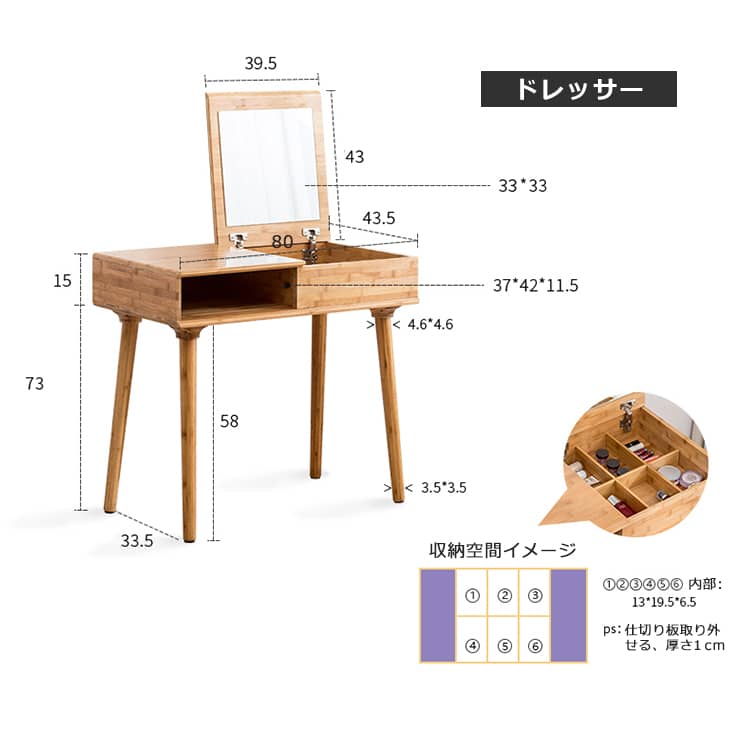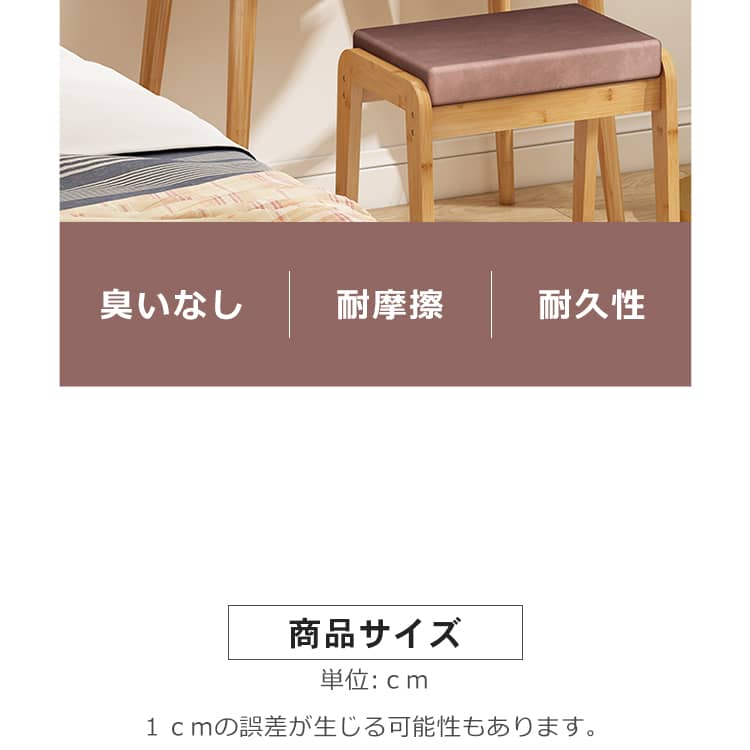 | サイズ | 【ドレッサー】約80×43.5×115cm 【クッションスツール】約43×33.5×45cm 【丸いスツール】約41.5×30×30cm 【正方形スツール】約41.5×30×30cm 【長方形スツール】約41.5×35×25cm |
