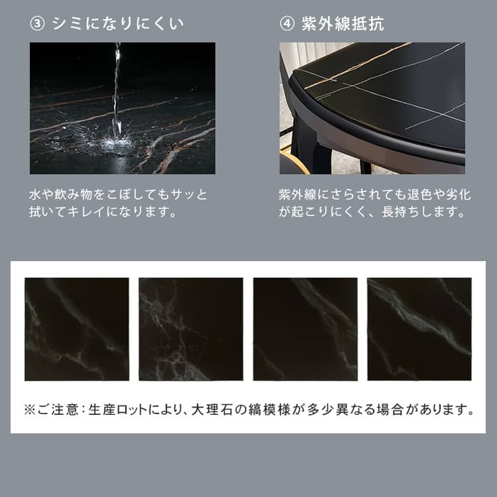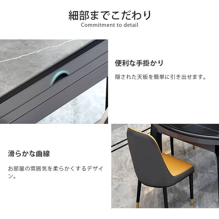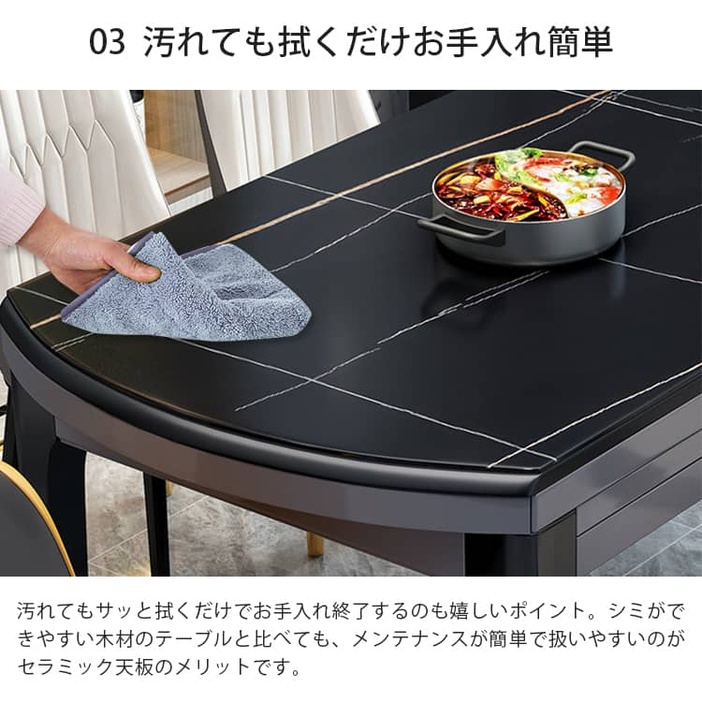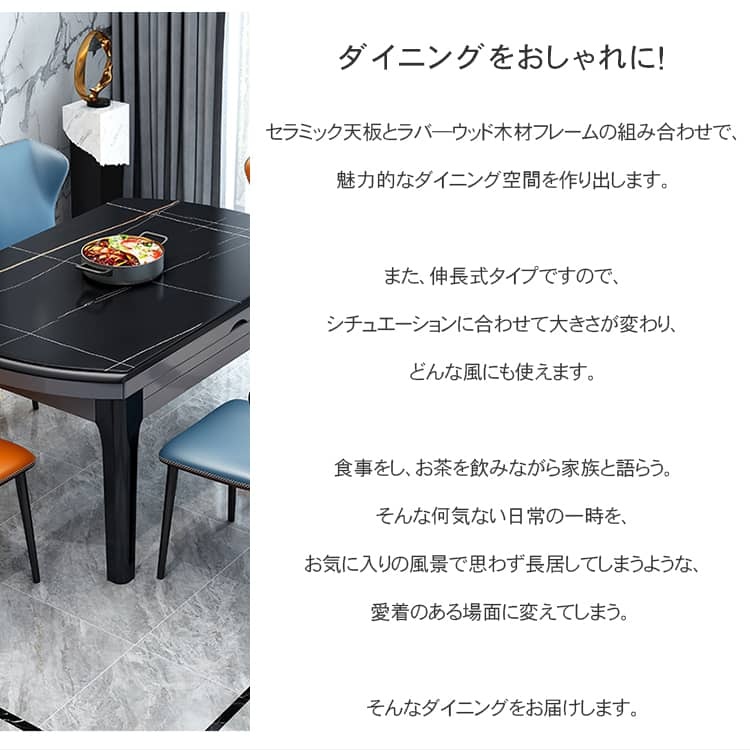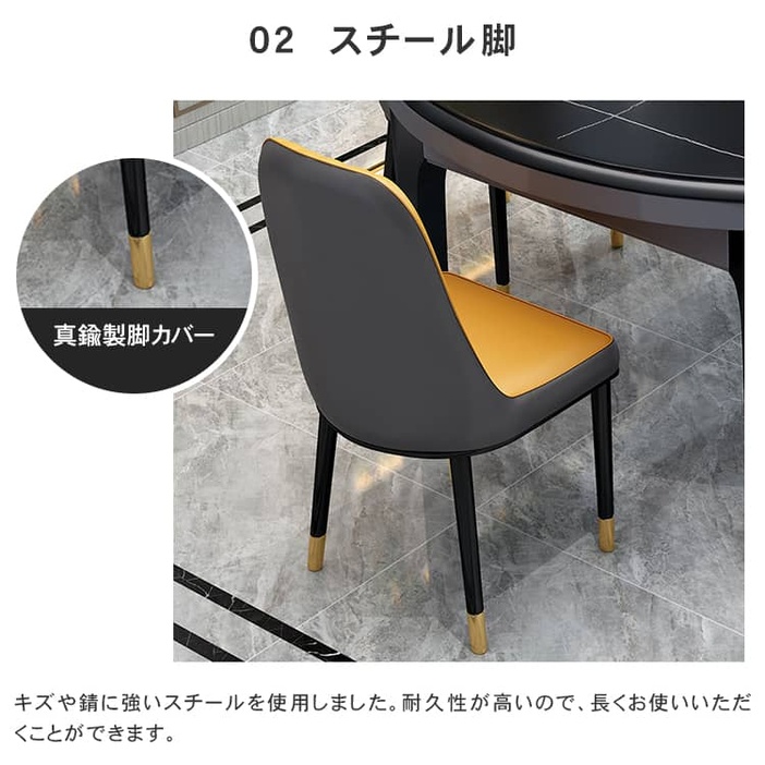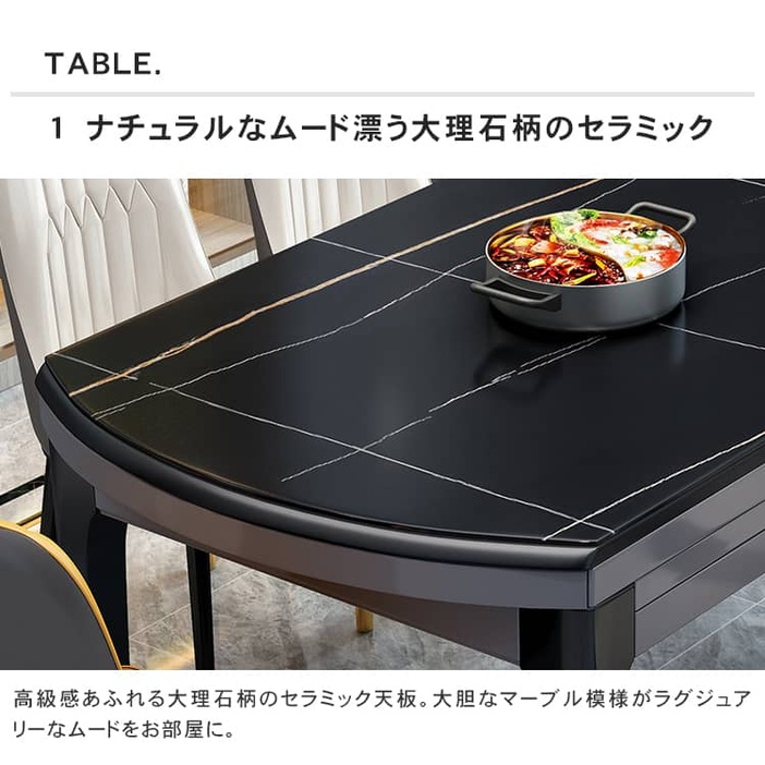 【テーブル】:セラミック、ラバーウッド 【椅子】:合成皮革、スチール、ウレタン、真鍮 |