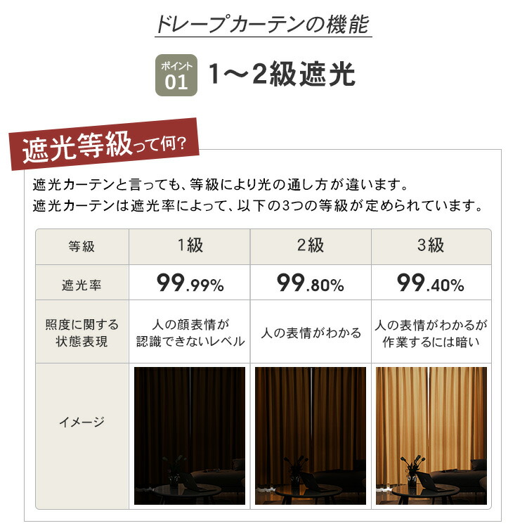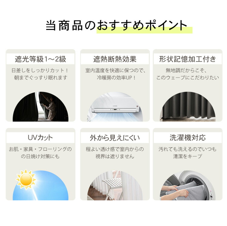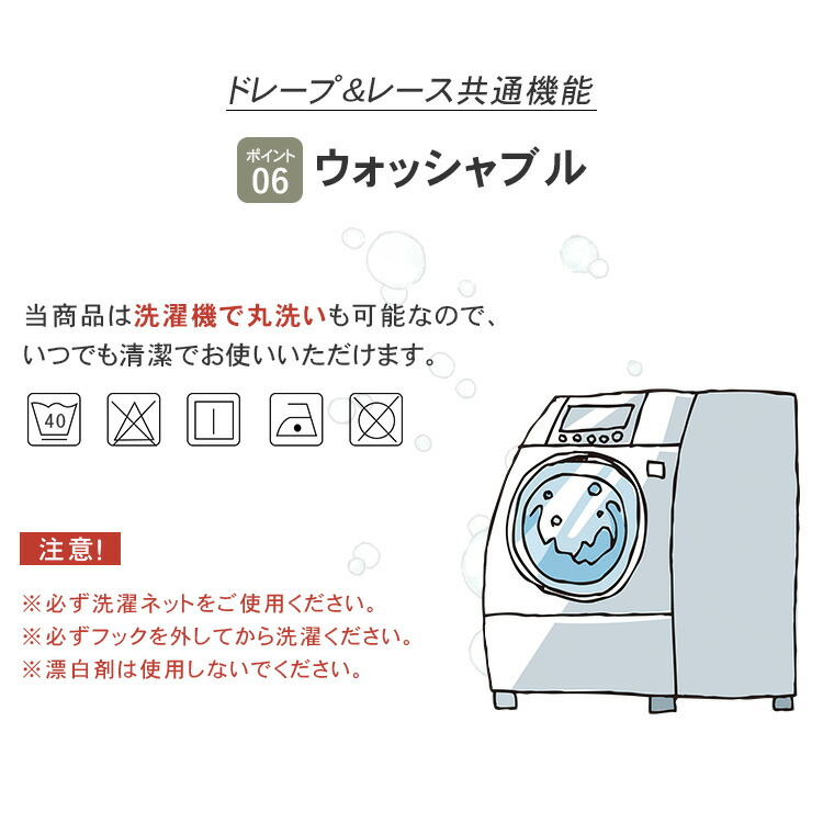 | 機 能 | 遮光、遮熱保温、形状記憶加工、UVカット、洗える |