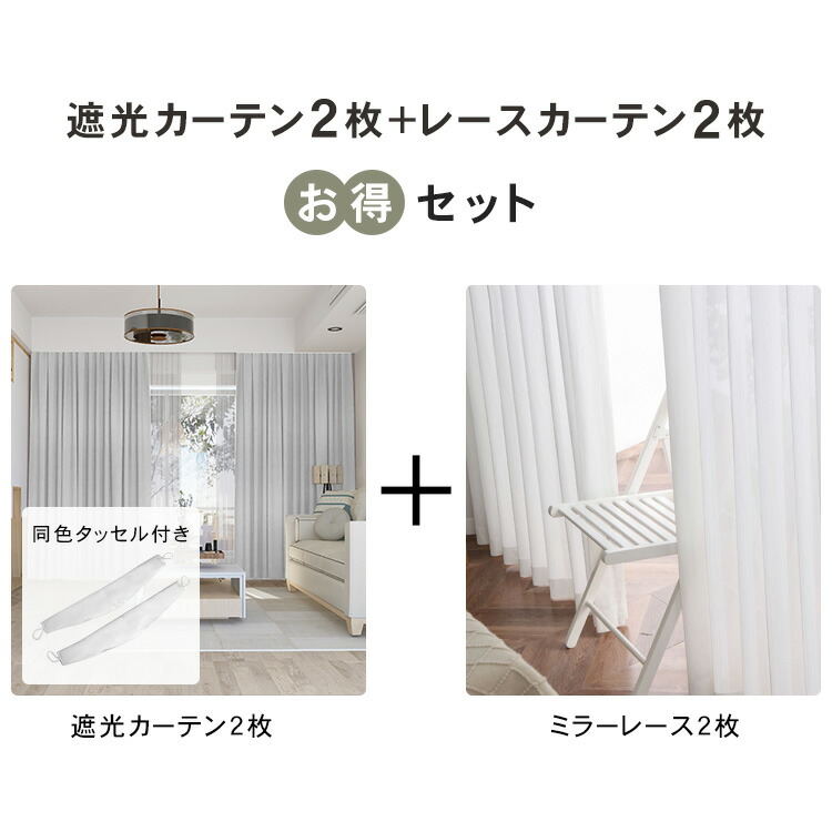 | 内 容 | レースカーテン2枚、ドレープカーテン2枚、共布タッセル2枚、アジャスターフック |