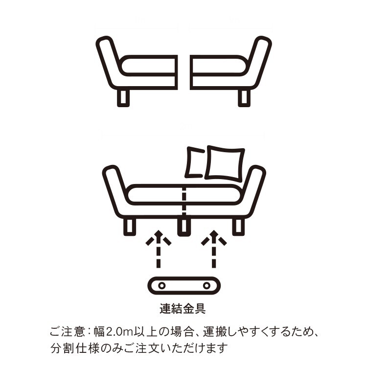 | サイズ | 1人掛け:約130cm×100cm×72cm 2人掛け:約180cm×100cm×72cm 2人掛け(大):約200cm×100cm×72cm 3人掛け:約220cm×100cm×72cm |