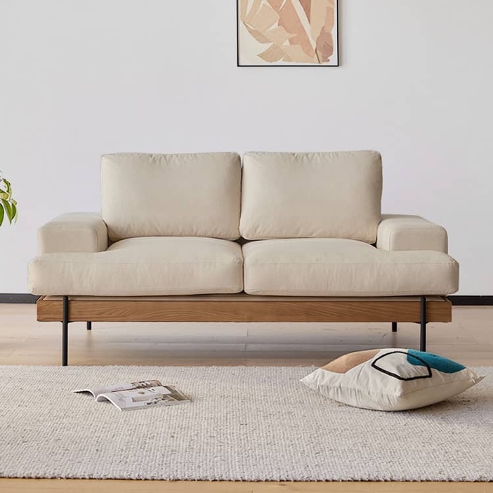 張地: ポリエステ100% 充填物: ウレタン、シリコンフィル、フェザー フレーム: ホワイトアッシュ 脚: スチール |