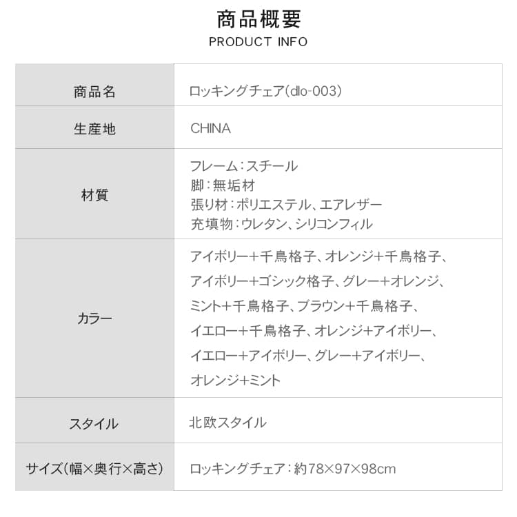 | サイズ | ロッキングチェア:約78*97*98cm |
