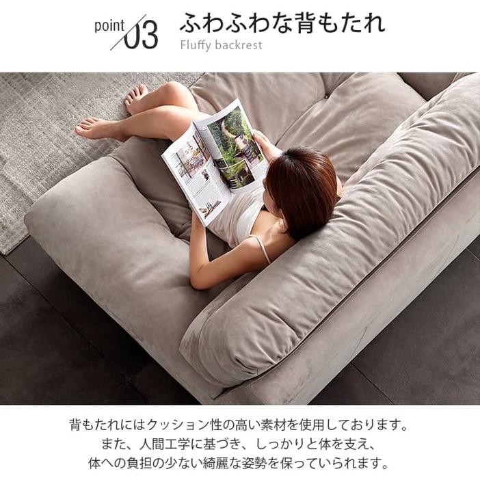 | 素材 | ■フレーム:パイン材 ■張地:スエードクロス ■充填物:ウレタン |