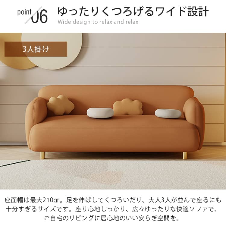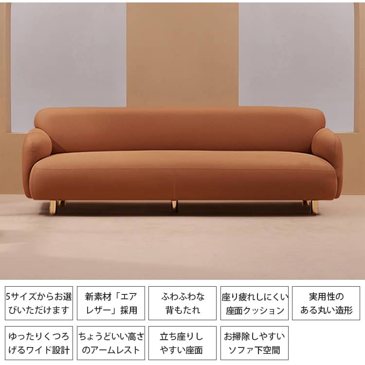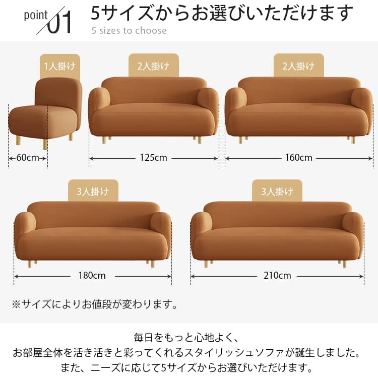 | サイズ | 1人掛け:60cm×80cm×70cm 2人掛け:125cm×80cm×70cm 2人掛け:160cm×80cm×70cm 3人掛け:180cm×80cm×70cm 3人掛け:210cm×80cm×70cm |