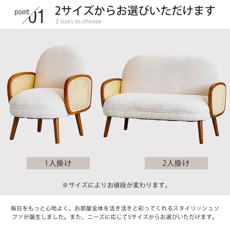 | サイズ | 1人掛け:59cm×81cm×80cm 2人掛け:127cm×81cm×80cm |