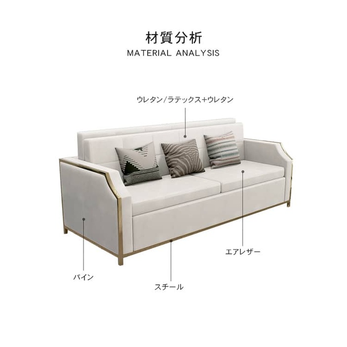 | 素材 | ■フレーム:天然木、スチール ■張地:エアレザー ■充填物:ウレタン/ラテックス+ウレタン |