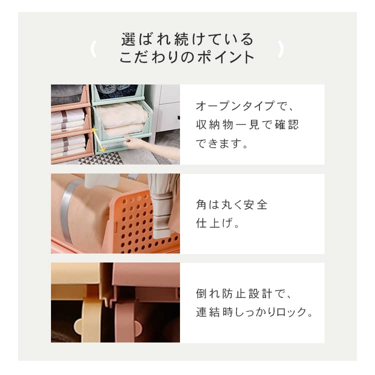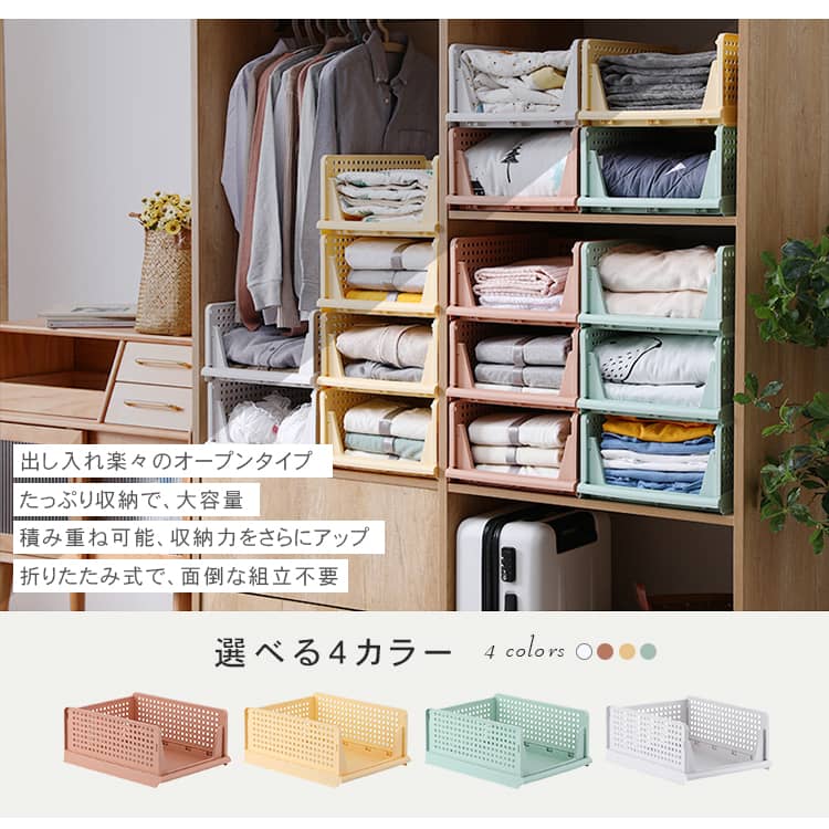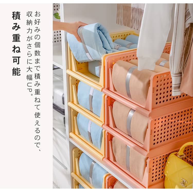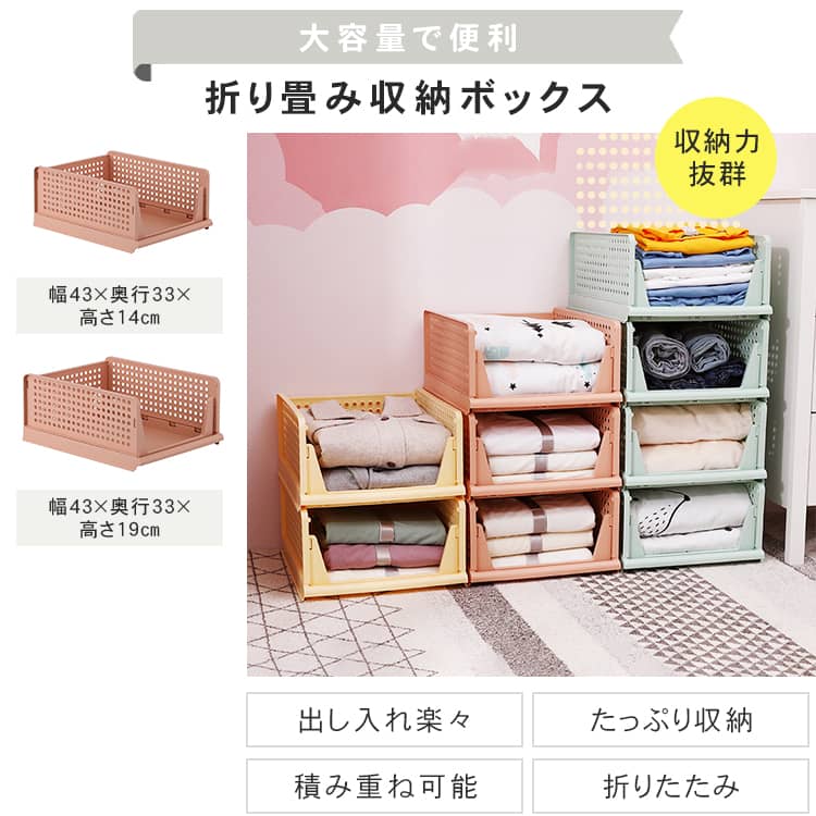 | おすすめのポイント | ■大容量で便利、オープン式折りたたみ収納ボックス。 ■衣類や小物などたっぷり収納できます。 ■省スペース設計、使用しない時は折りたたんで、家具の隙間にサッと納めます。 ■積み重ねて使えるので、狭いスペースでも効率的に利用できます。 ■本体の奥行は33cmで、クローゼットにピッタリなサイズ。 ■ニーズに合わせて自由に組み合わせます。 |
