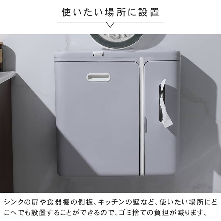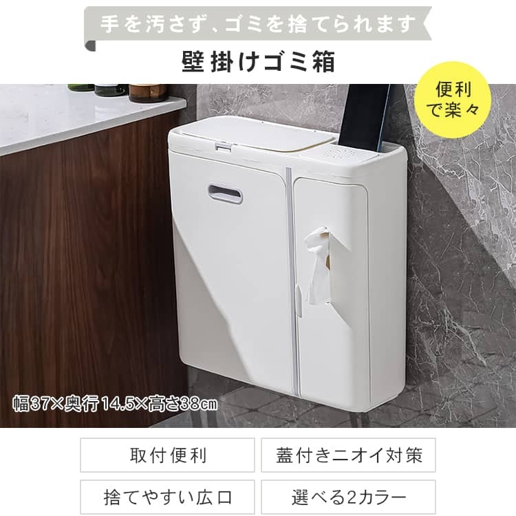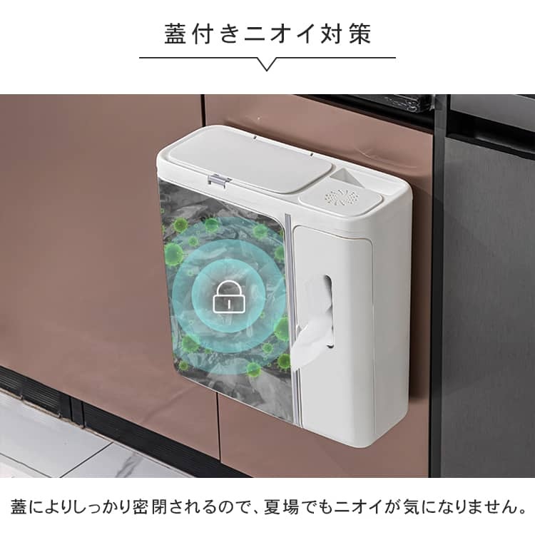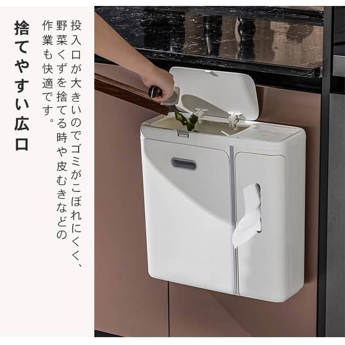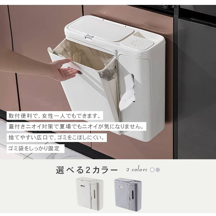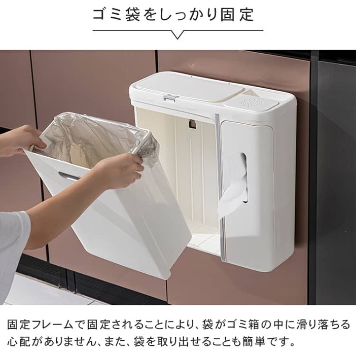 | おすすめのポイント | ■便利で楽々壁掛けゴミ箱。 ■手間をかからずに女性一人でも取付ます。 ■蓋付きで匂い対策、蓋によりしかっり密閉されるので、夏場でも匂いが気になりません。 ■捨てやすい広口、作業楽々できます。 ■固定フレームが設置されており、ごみ袋をしかっり固定でき、袋の滑り落ちる心配がありません。 ■どん場所でも設置しやすいデザイン。 ■耐休性に優れた素材で作り上げゴミ箱、長くお使いいただけます。 |