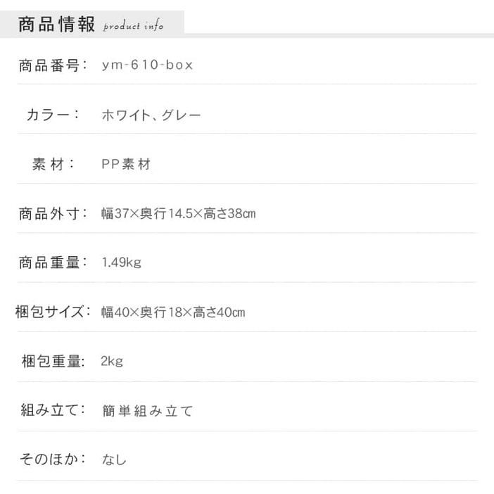 | 商品重量 | ゴミ箱 ■約1.49kg |