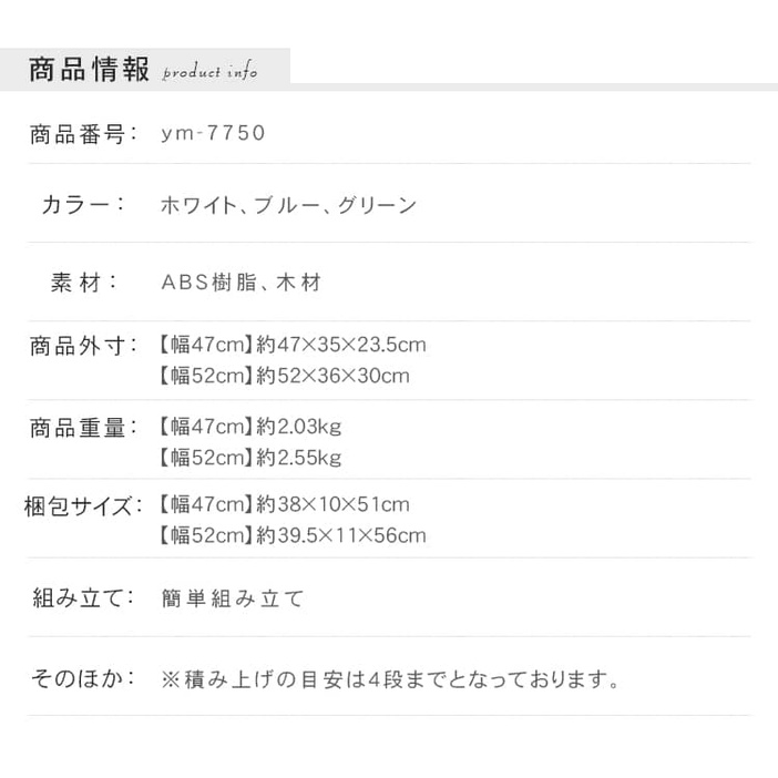 | 商品外寸 | ボックス ■【幅47cm】約47×35×23.5cm ■【幅52cm】約52×36×30cm |