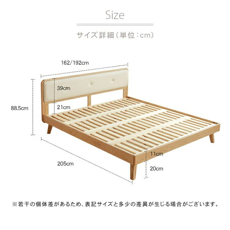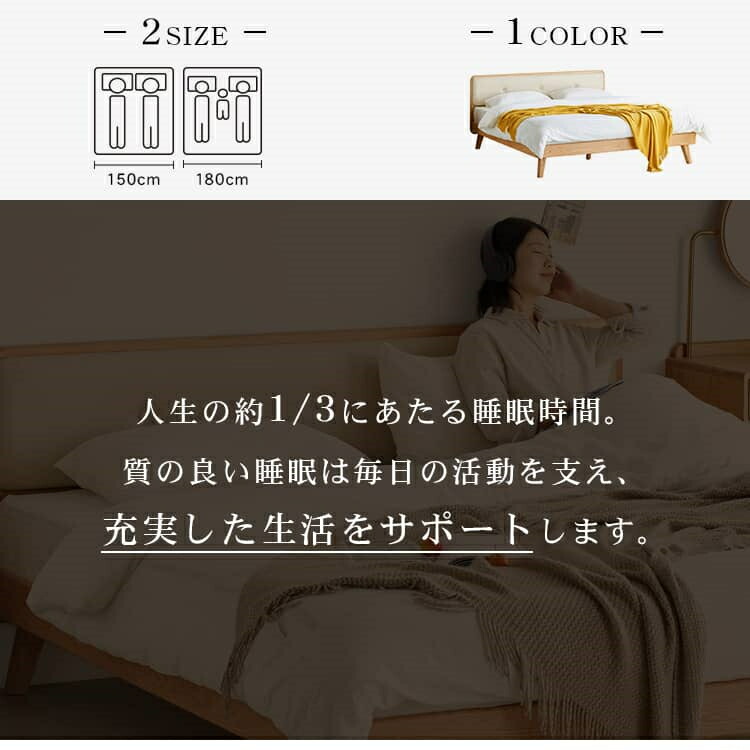 | サイズと重量 | ベッドフレーム ■幅150cm:約162×205×88.5cm、重量:約44.3kg ■幅180cm:約192×205×88.5cm、重量:約47.3kg |