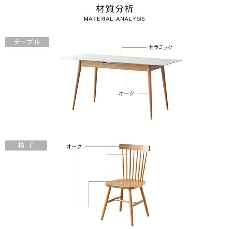 | 素材 | ■テーブル:セラミック、オーク材 ■いす:オーク |
