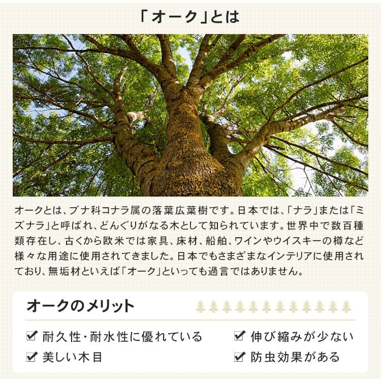 | 素材 | ■天板、扉:オーク材 ■引出しの底板、仕切り板:キリ ■オーク材 ■背板:キリ |