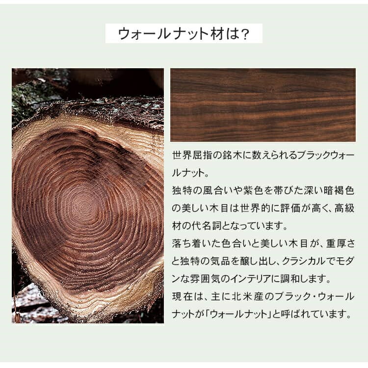 | 素材と塗装 | ■素材:ウォールナット材、ポプラ ■塗装:ウレタン塗装 |