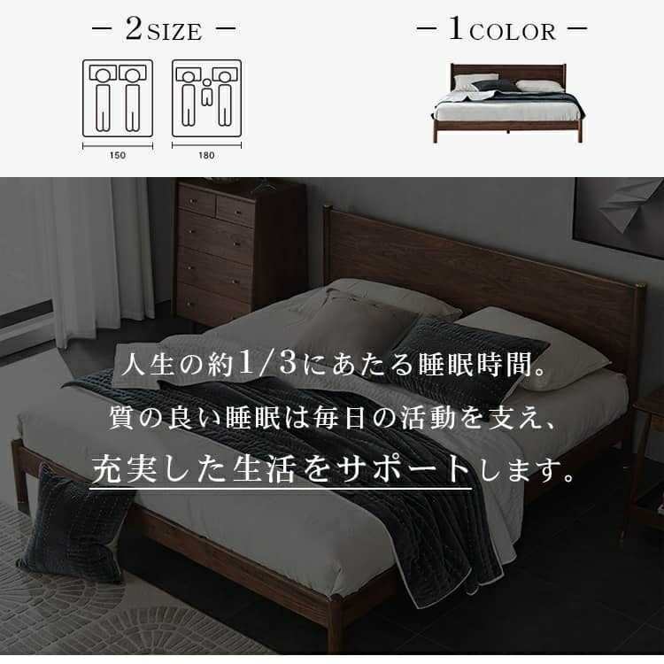 | サイズと重量 | ベッドフレーム ■幅150cm:約158×208.5×90cm、重量:約43.0kg ■幅180cm:約188×208.5×90cm、重量:約48.0kg |