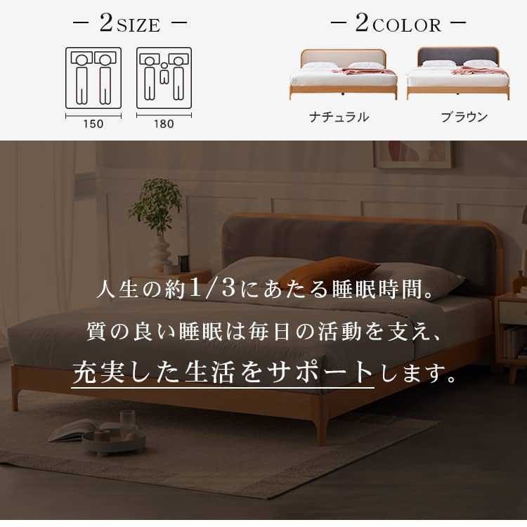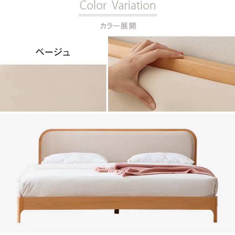 | カラー | ベッドフレーム:ナチュラル 背もたれクッション:グレー、ベージュ |
