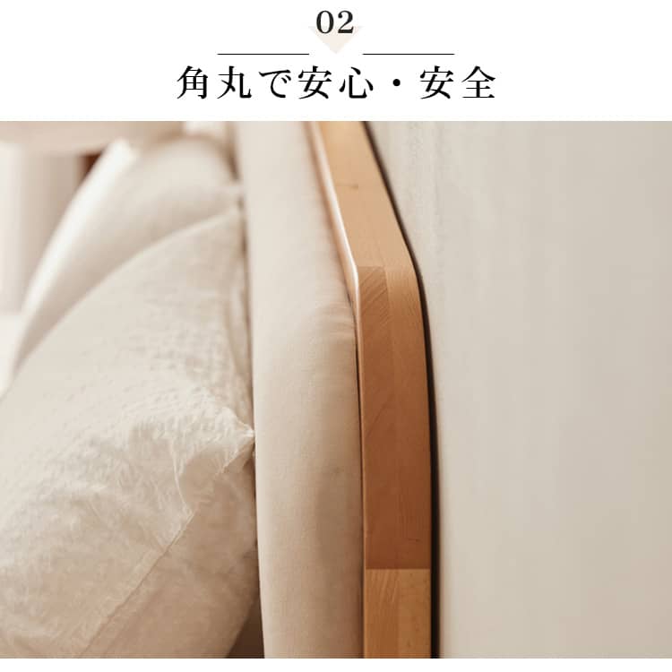 | おすすめポイント | ■安全・安心な強度。 ■角丸設計で安心・安全。 ■環境に優しい塗装。 ■見た目と実用性をこだわったベッドフレーム。 ■掃除しやすい下空間。 ■すのこベッドは通気性抜群。 ■ベッドボードにクッション付き。 |