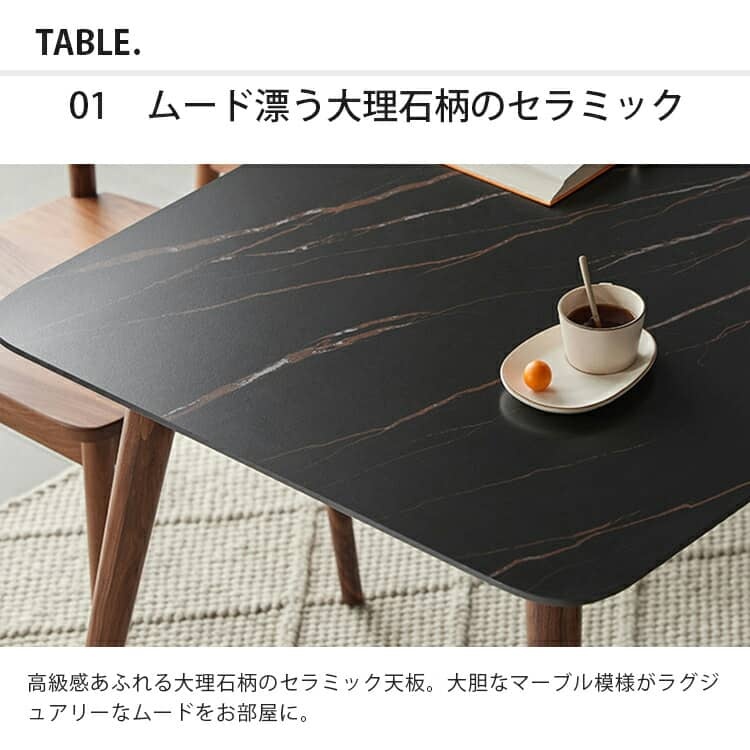 | 素材 | ■テーブル:セラミック、ウォールナット、銅 ■いす:ウォールナット |