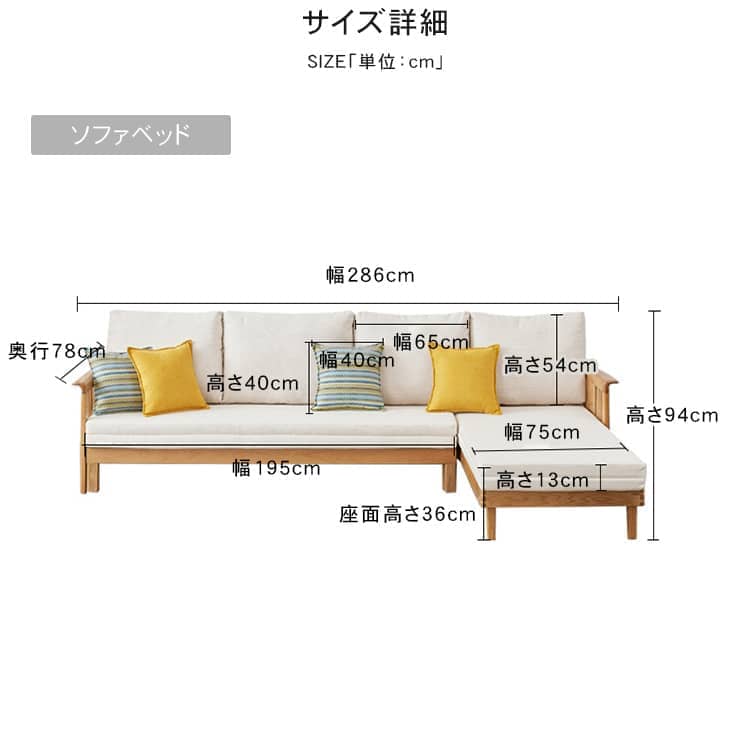 | サイズ | 幅×奥行×高さ:約286×(78~140)×94cm |