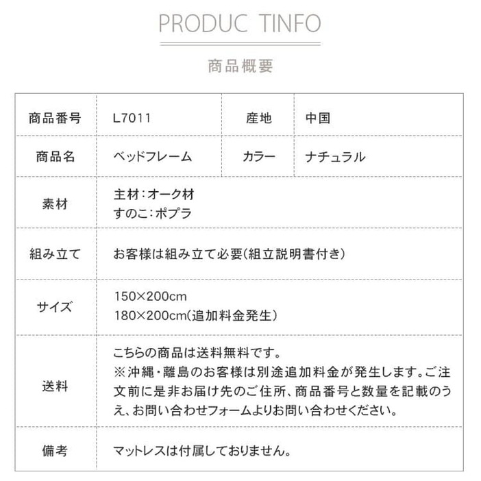 | 素材 | ■フレーム:オーク材 ■すのこ:ポプラ |