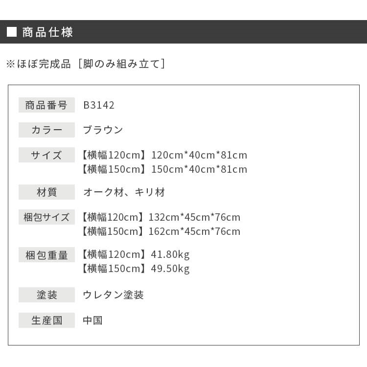| サイズ | ■【幅120cm】約120×40×81cm ■【幅150cm】約150×40×81cm |