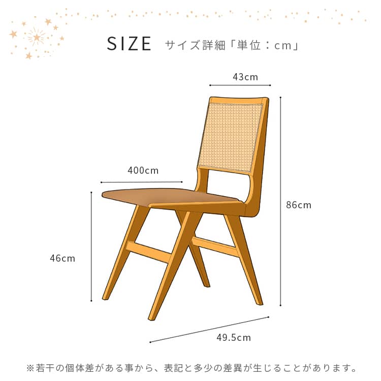| サイズ | チェア ■43cm×49.5cm×86cm |