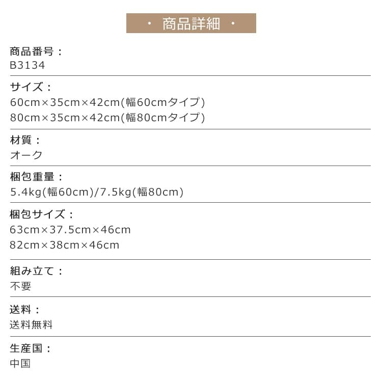 | 梱包サイズ | シューズラック ■【横幅60cm】63×37.5×46cm ■【横幅80cm】82×38×46cm |