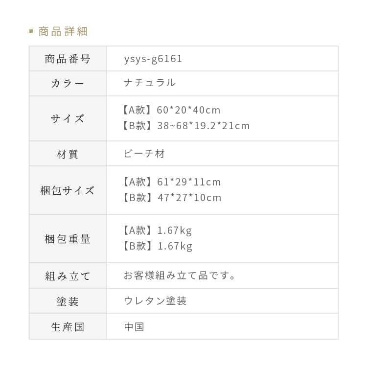 | サイズ | ■【Aタイプ】約60×20×40cm ■【Bタイプ】約38~68×19.2×21cm |