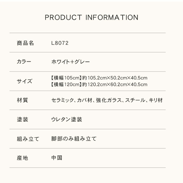 | サイズ | テーブル ■【横幅105cm】約105.2×50.2×40.5cm ■【横幅120cm】約120.2×60.2×40.5cm |