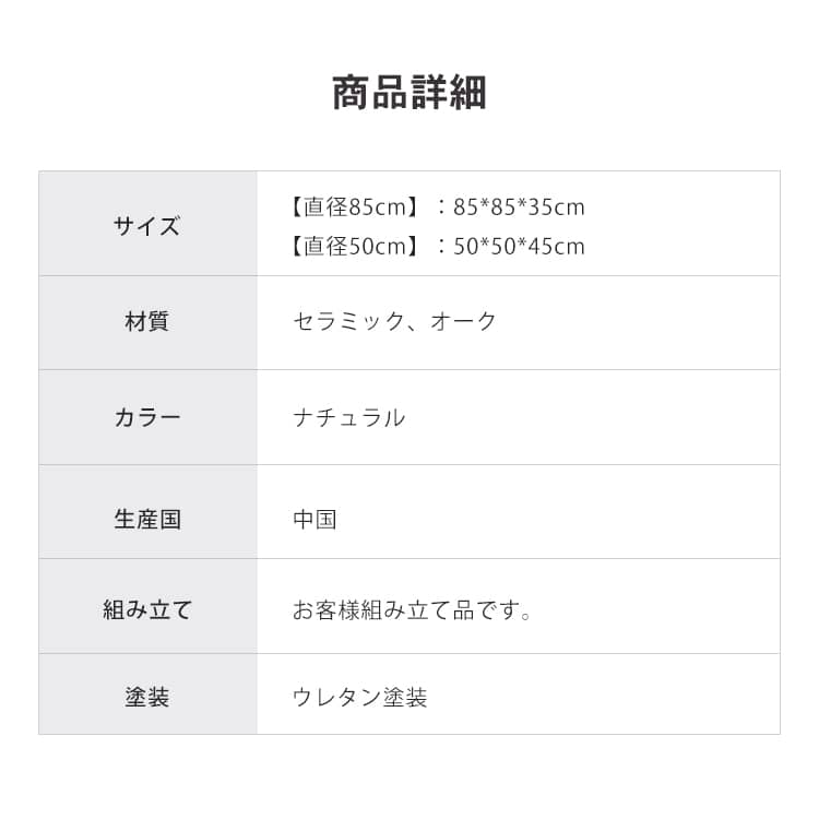 | サイズ | ■【直径50cm】約50cm×50cm×45cm ■【直径85cm】約85cm×85cm×35cm |
