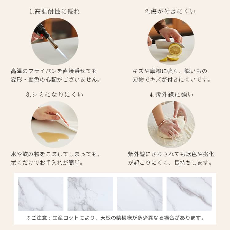 | おすすめのポイント | ■ニーズに合わせて自由に組み合わせ。 ■様々なシーンで活躍。 ■上品なセラミック天板。 ■しっかりとした天然木脚。 ■使いやすいサイズ。 ■角丸加工で安心に使える ■温もりを感じる素材--オーク材を使用する。 |