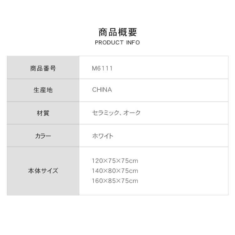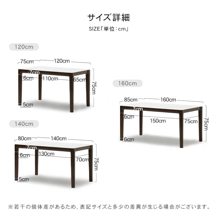 | サイズ | テーブル ■120×75×75cm ■140×80×75cm ■160×85×75cm |