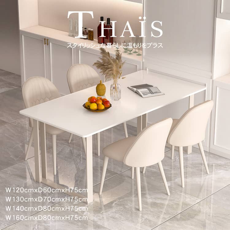 | 商品外寸 | ダイニングテーブル ■幅120cm×奥行き60cm×高さ75cm ■幅130cm×奥行き70cm×高さ75cm ■幅140cm×奥行き80cm×高さ75cm ■幅160cm×奥行き80cm×高さ75cm ■いす:幅46cm×奥行き43cm×高さ78cm |