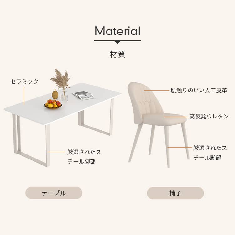 | 材質 | セラミック、スチール 【いす】人工皮革、ウレタン、スチール |