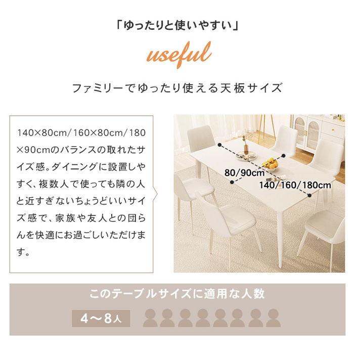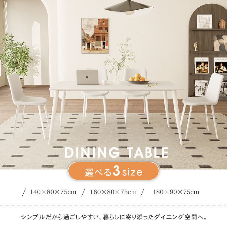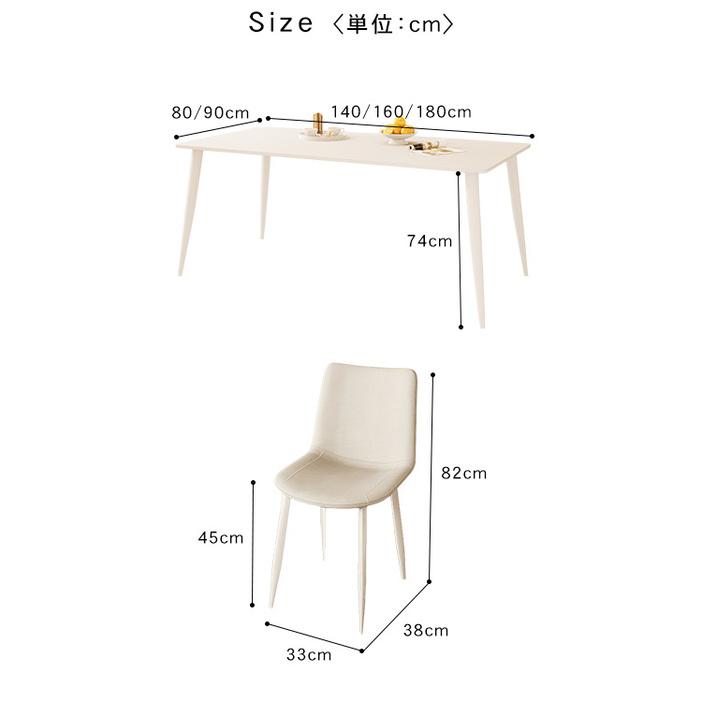 | 商品外寸 | テーブル: 幅140×奥行80×高さ75cm 幅160×奥行80×高さ75cm 幅180×奥行90×高さ75cm 椅子: 幅46×奥行43×高さ78cm |