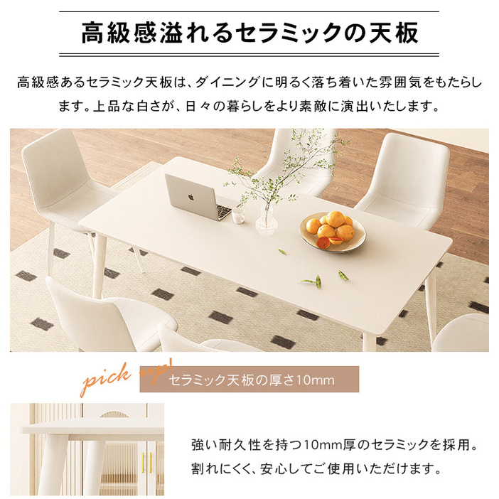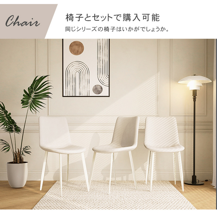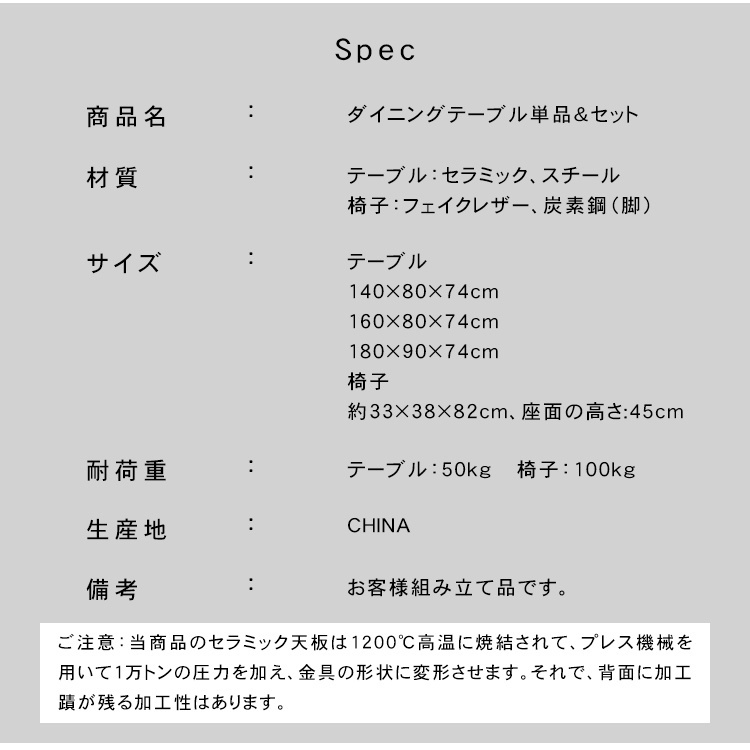 | 材質 | テーブル: セラミック、炭素鋼 椅子: 合成皮革、ウレタン、炭素鋼 |