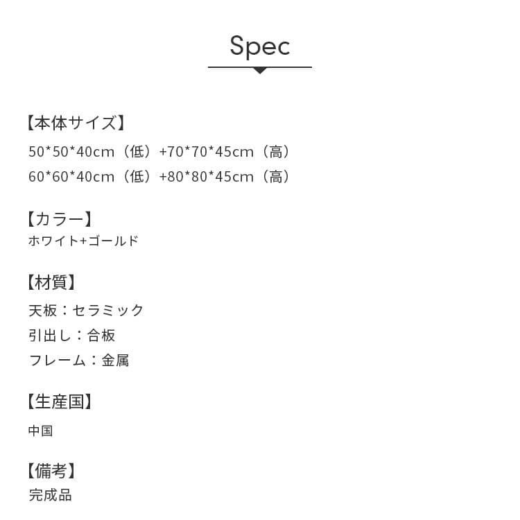 | 材質 | 引出し:合板 天板:セラミック フレーム:金属 |